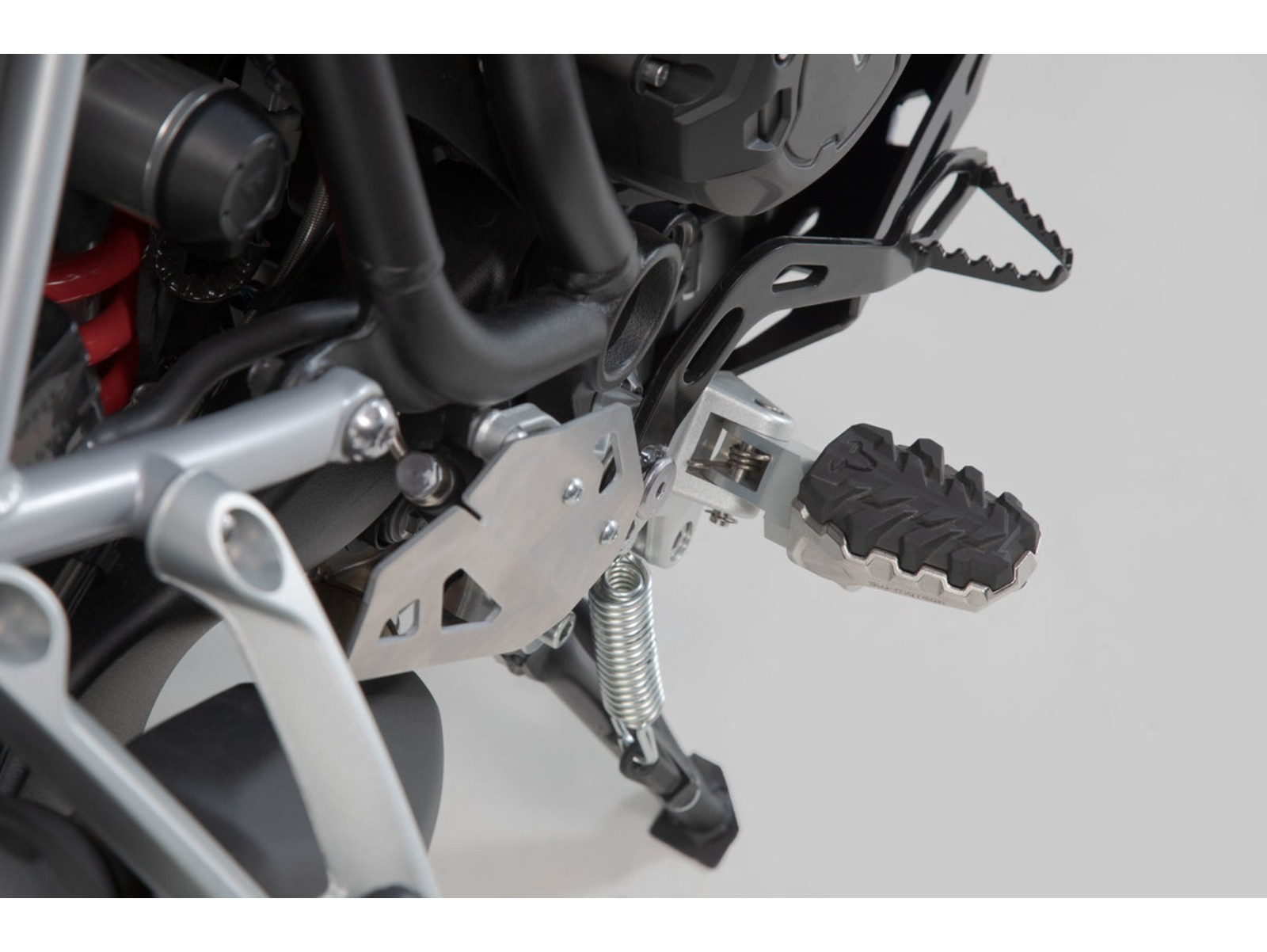 Die Original-Fußraste bietet keine bequeme Position? Dann ist das EVO Fußrasten-Kit von SW-MOTECH die ideale Lösung. Ein ausgeklügeltes System, bestehend aus drehbaren Elementen mit fest ineinandergreifenden Zähnen, erlaubt 36 Variationsmöglichkeiten. Die Position der Fußraste lässt sich nach unten, vorne und hinten sowie in der Neigung auf die individuellen Bedürfnisse einstellen.