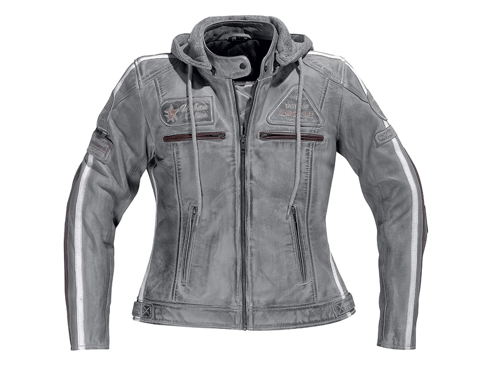 Sportliche Retrojacke für Damen aus hochwertigem Leder mit abnehmbarer Kapuze