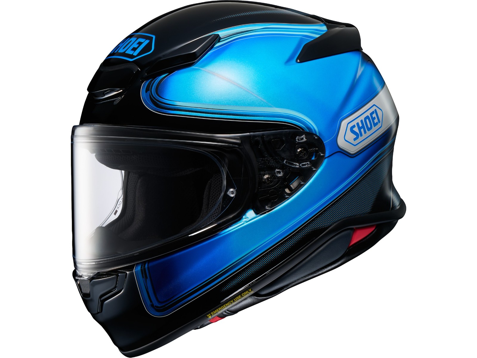 Das für den SHOEI NXR2 neu entwickelte Visier CWR-F2 mit zweidimensionaler Formgebung ermöglicht eine verzerrungsfreie und sehr natürliche Sicht. Verstärkungen am oberen und unteren Visierrand erhöhen die Verwindungssteifigkeit, ein nun mittig angebrachter Verriegelungsmechanismus verhindert das ungewollte Öffnen des Visiers. Es läßt sich dank einer weiterentwickelten Mechanik des Vorgängermodells schnell und werkzeugfrei wechseln und justieren.