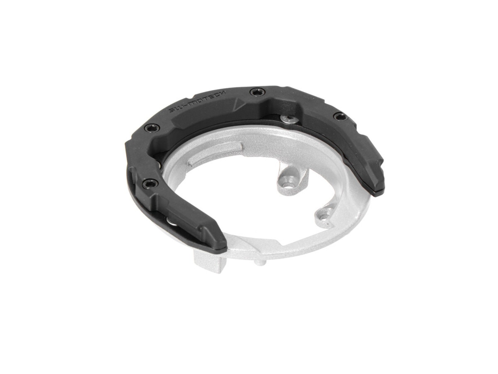 So lässt sich der Oberring ganz individuell auf der Führungsschiene an der Unterseite des Tankrucksacks ausrichten. Ist die passende Position einmal gefunden, dann wird der Oberring fest verschraubt. Beim Wechsel auf ein anderes Motorrad kann die Stellung des Oberrings entsprechend angepasst werden.