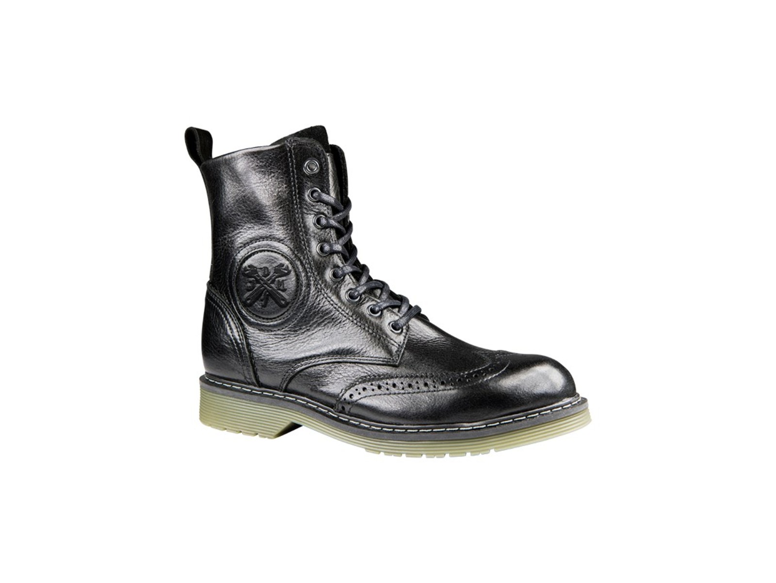 Jeder unserer Motorradschuhe verfügt selbstverständlich auch über eine „Waterstopfunktion“ (bekannt von Trekking u. Wanderschuhen) d.h. die Schuhlasche ist so gefertigt, dass ein schnelles eindringen von Wasser im Schnürbereich des Schuhs nicht möglich ist. Für zusätzlichen Tragekomfort kann der Fahrer mittels einem „easy entry“ in der Innenseite des Schuhs per Reisverschluss diesen Schuh schnell und einfach an/-aus zuziehen, ohne dabei die Schnürung öffnen zu müssen. Auch eine Öl resistente, vibrations absorbierende und rutschfeste Sohle gehört zur Standardausstattung unserer JohnDoe Motorradschuhe. Das schöne Pudapester Muster und die Details wie ein in Leder geprägtes John Doe Logo am Knöchelschutz, das JDM-Metallemblem an der Einstiegslasche runden das klassische Design unseres „Sixty“ ab.